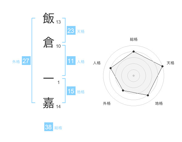 飯倉 一嘉さんの天格は23画の5点!