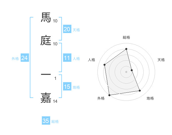 馬庭 一嘉さんの総格は35画の4点!