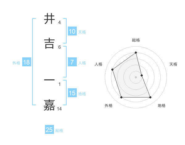 井吉 一嘉さんの総格は25画の4点!