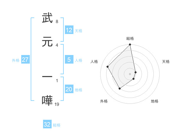 武元 一嘩さんを姓名の画数から五運を鑑定