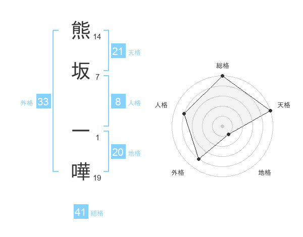 熊坂 一嘩さんを姓名の画数から五運を鑑定