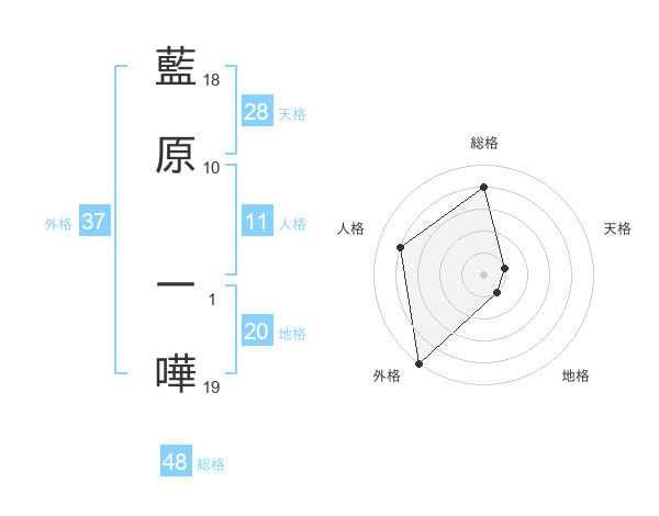 藍原 一嘩さんを姓名の画数から五運を鑑定