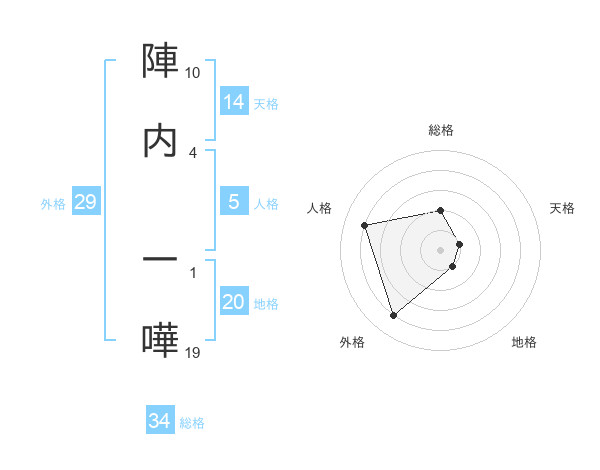 陣内 一嘩さんを姓名の画数から五運を鑑定