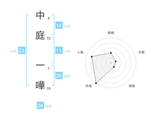 中庭 一嘩さんを姓名の画数から五運を鑑定