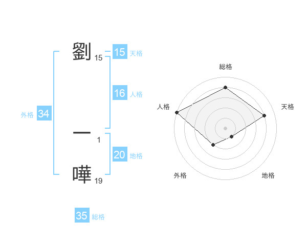 劉 一嘩さんの天格は15画の4点!