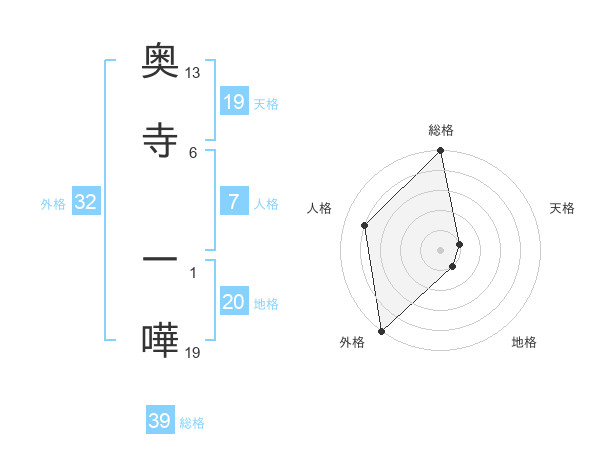 奥寺 一嘩さんの天格は19画の1点!