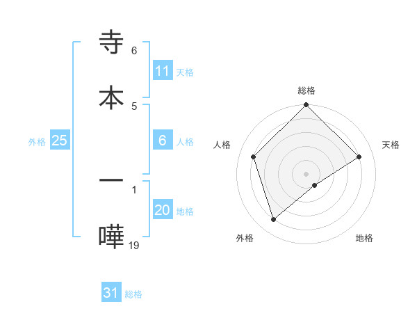 寺本 一嘩さんを姓名の画数から五運を鑑定