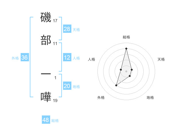 磯部 一嘩さんを姓名の画数から五運を鑑定