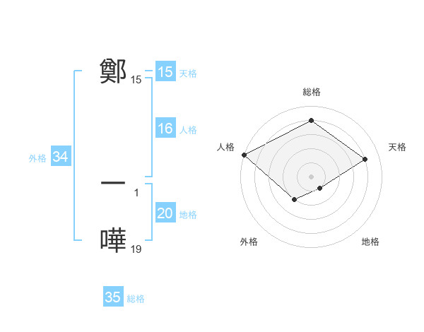 鄭 一嘩さんを姓名の画数から五運を鑑定