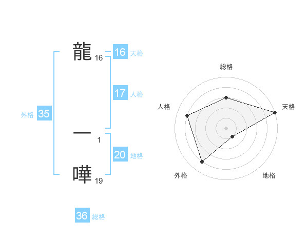 龍 一嘩さんの地格は20画の1点!