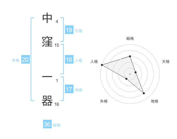 中窪 一器さんの天格は19画の1点!