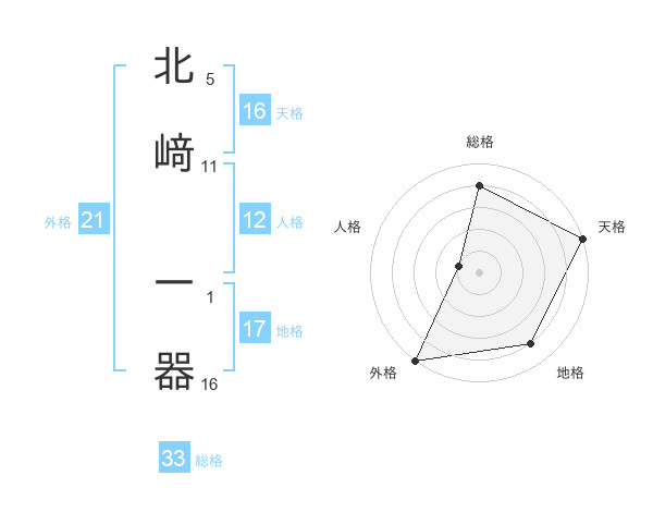 北﨑 一器さんの外格は21画の5点!