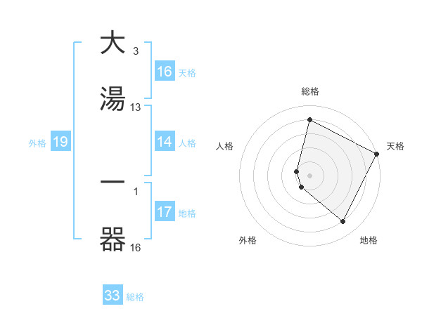 大湯 一器さんの天格は16画の5点!