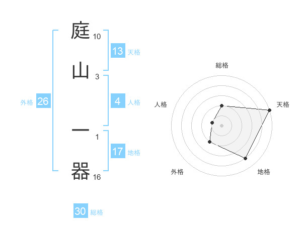 庭山 一器さんの総格は30画の2点!