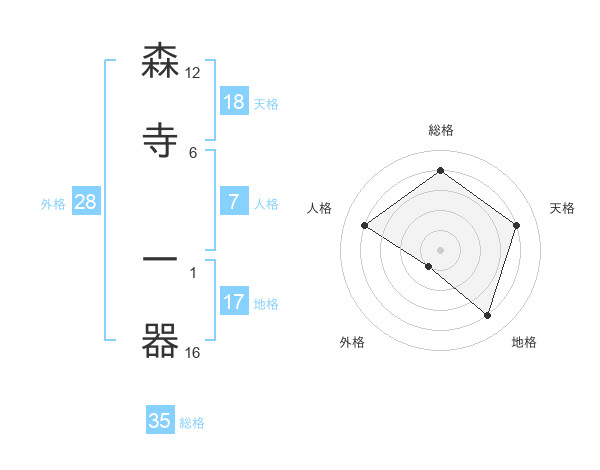 森寺 一器さんの総格は35画の4点!