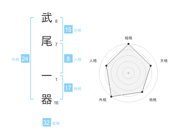 武尾 一器さんの総格は32画の5点!