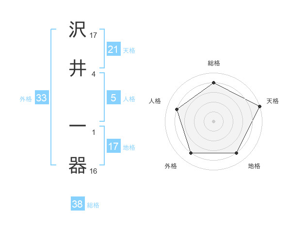 沢井 一器さんの総格は38画の4点!