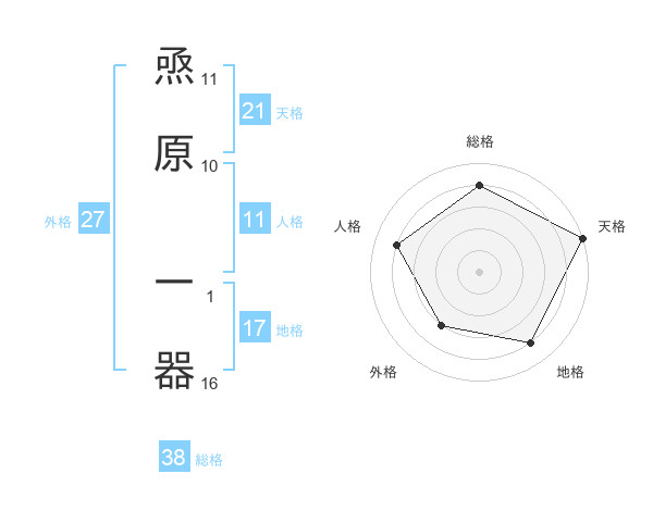 焏原 一器さんの総格は38画の4点!
