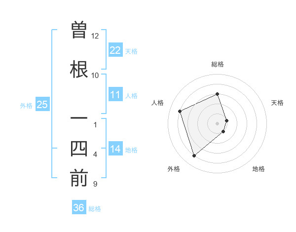 曽根 一四前さんを姓名の画数から五運を鑑定