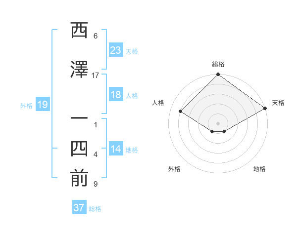 西澤 一四前さんの総格は37画の5点!