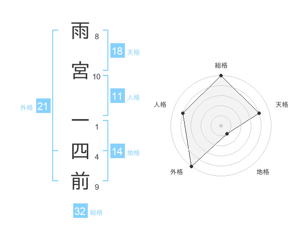 雨宮 一四前さんを姓名の画数から五運を鑑定