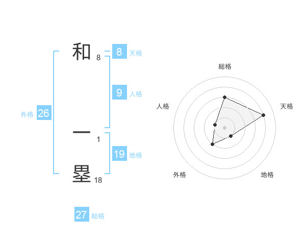 和 一塁さんの地格は19画の1点!