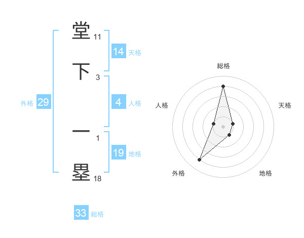 堂下 一塁さんの外格は29画の4点!