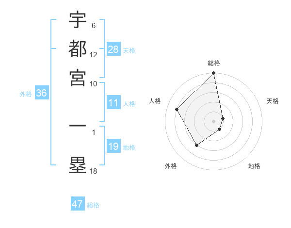 宇都宮 一塁さんを姓名の画数から五運を鑑定