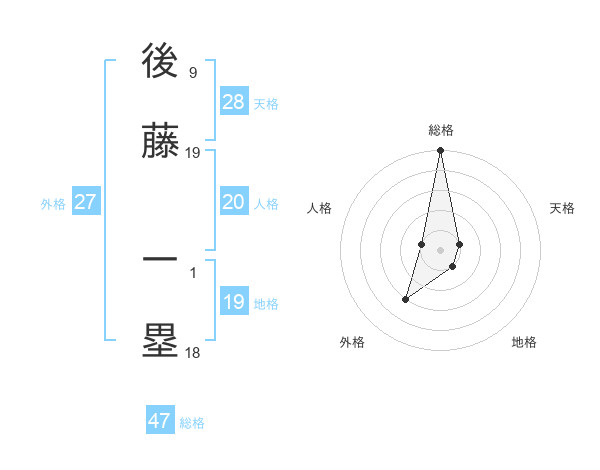後藤 一塁さんを姓名の画数から五運を鑑定