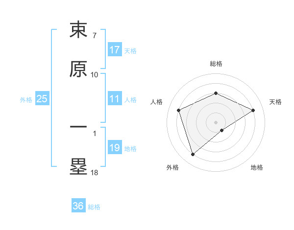 束原 一塁さんの地格は19画の1点!