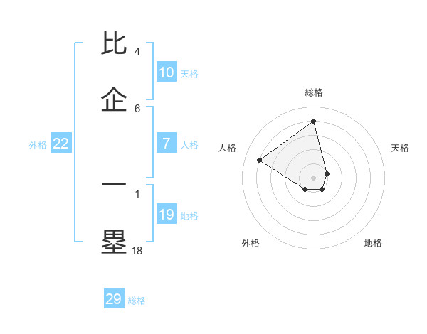 比企 一塁さんの総格は29画の4点!