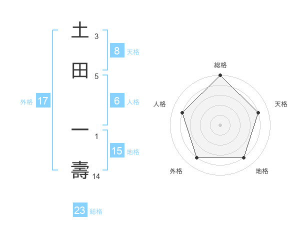 土田 一壽さんの総格は23画の5点!