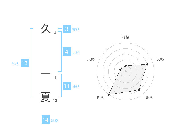 久 一夏さんの外格は13画の5点!
