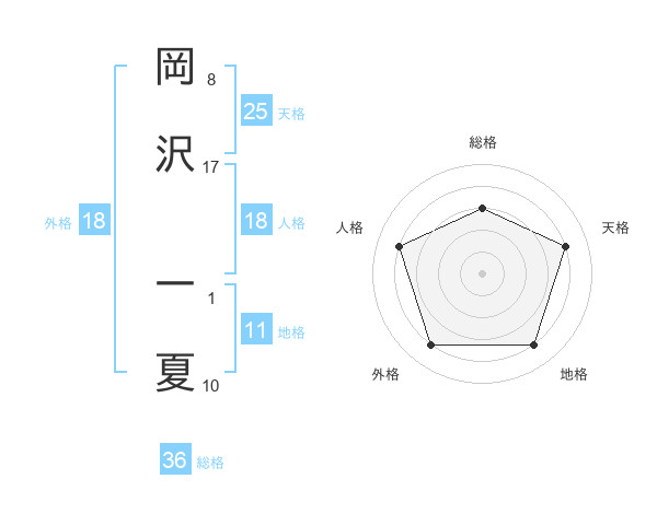 岡沢 一夏さんを姓名の画数から五運を鑑定