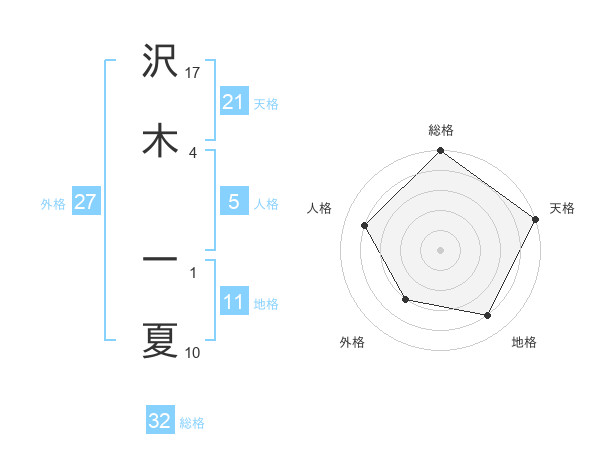 沢木 一夏さんを姓名の画数から五運を鑑定