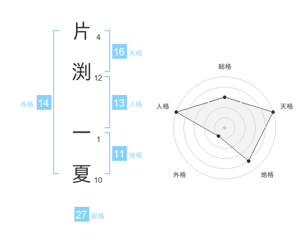 片渕 一夏さんの天格は16画の5点!