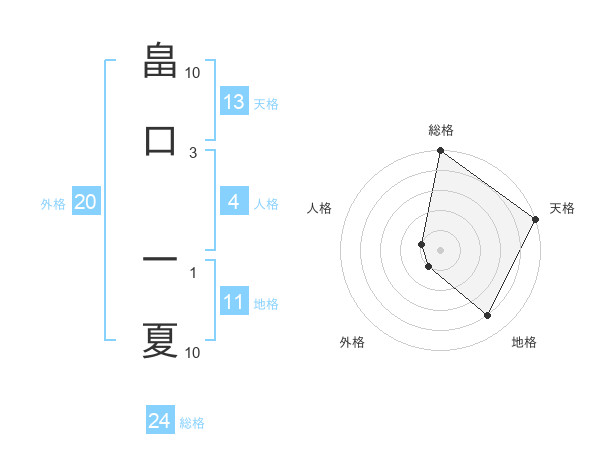 畠口 一夏さんの総格は24画の5点!