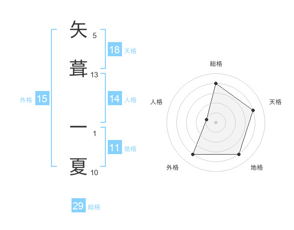 矢葺 一夏さんの総格は29画の4点!