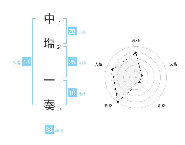 中塩 一奏さんの総格は38画の4点!