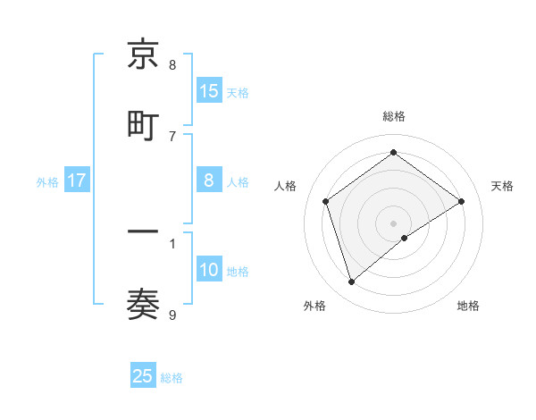 京町 一奏さんの総格は25画の4点!