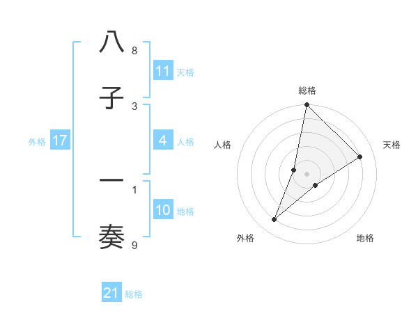 八子 一奏さんの外格は17画の4点!
