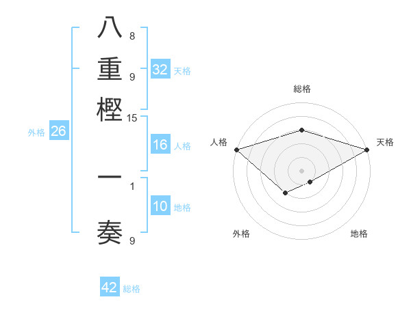 八重樫 一奏さんの総格は42画の3点!
