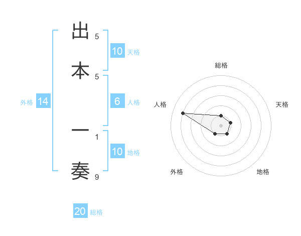 出本 一奏さんの総格は20画の1点!