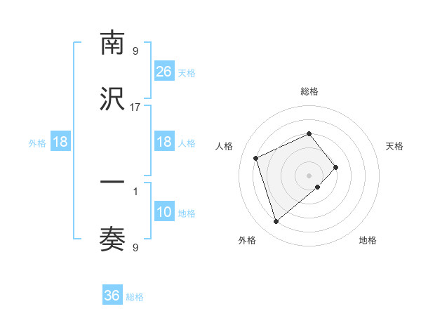 南沢 一奏さんを姓名の画数から五運を鑑定