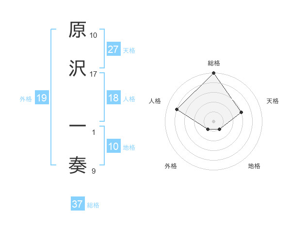 原沢 一奏さんの天格は27画の3点!