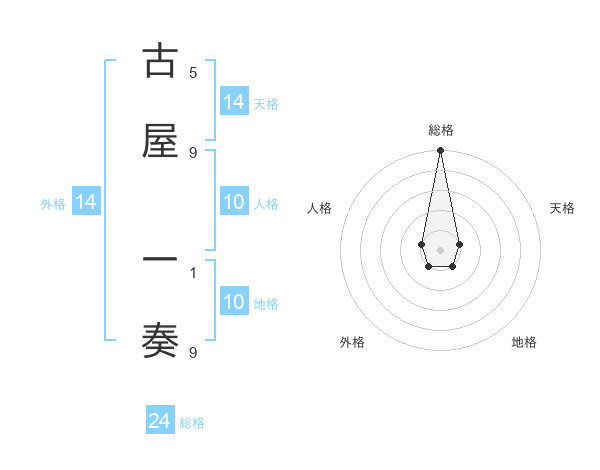 古屋 一奏さんを姓名の画数から五運を鑑定