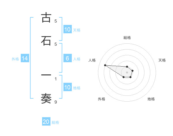 古石 一奏さんの総格は20画の1点!