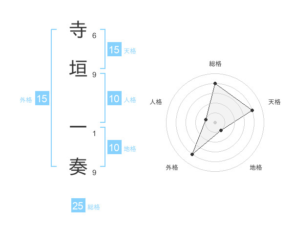 寺垣 一奏さんの総格は25画の4点!