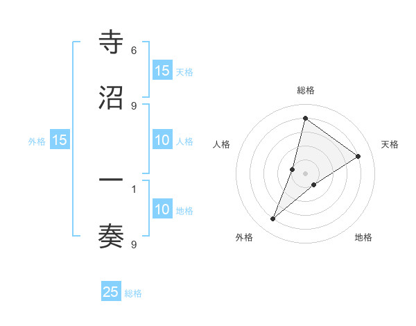寺沼 一奏さんを姓名の画数から五運を鑑定