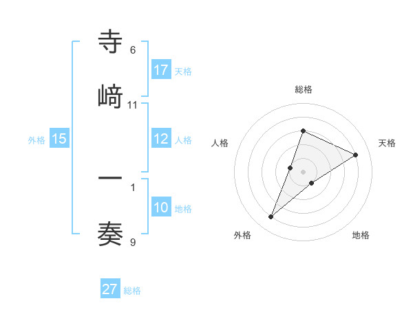 寺﨑 一奏さんの総格は27画の3点!